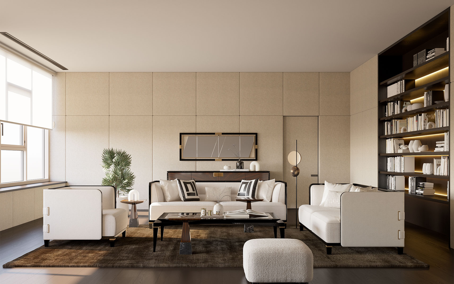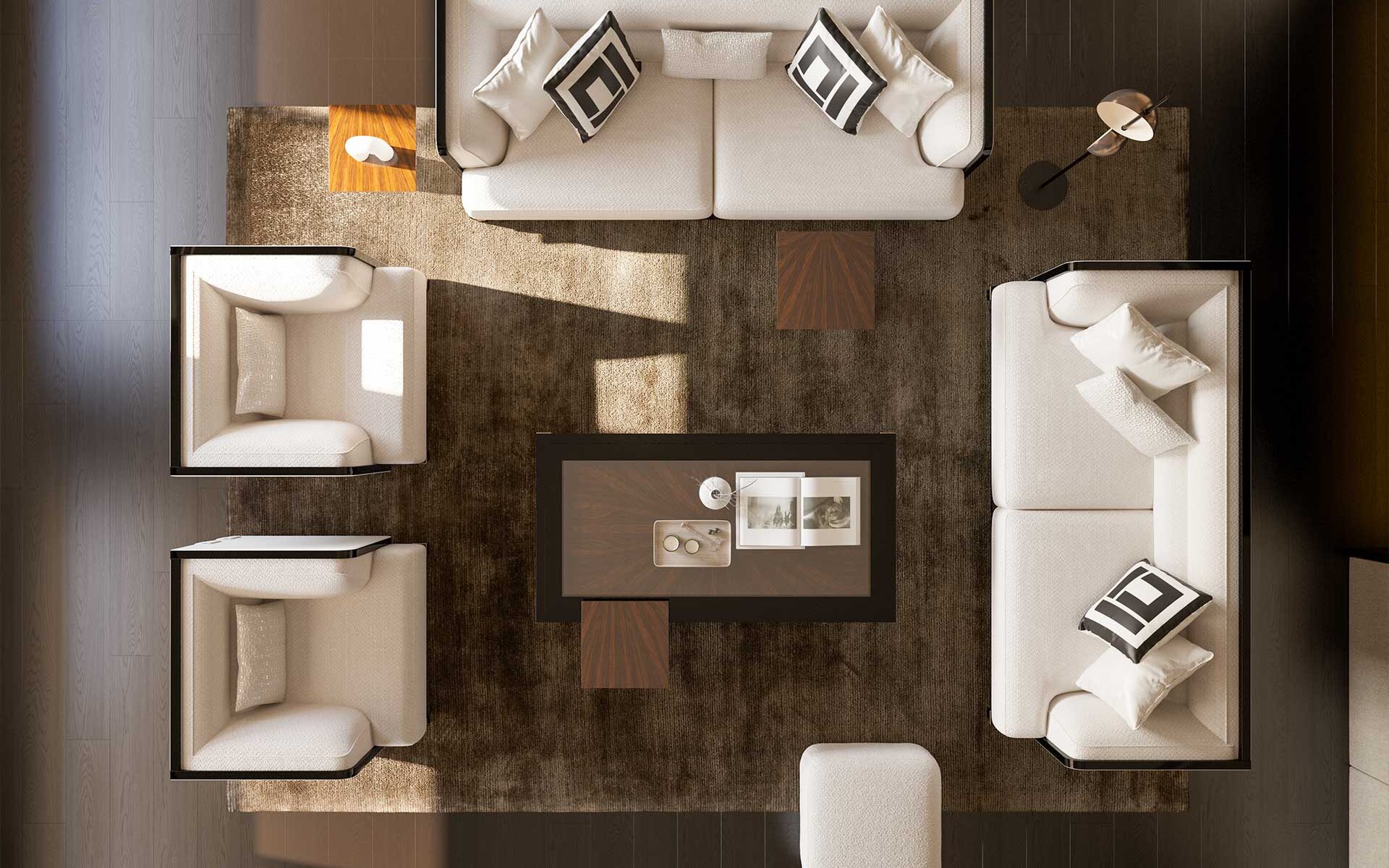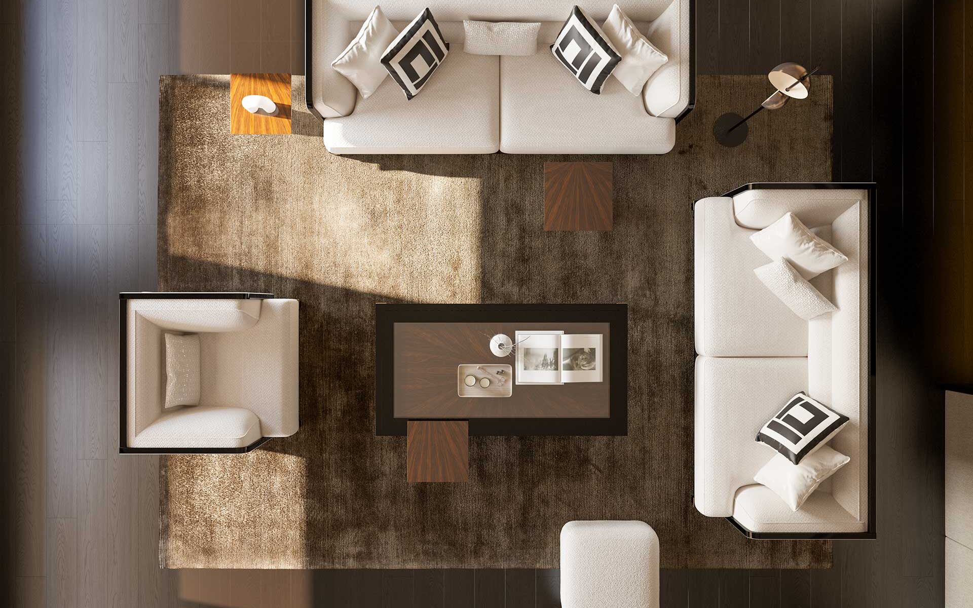 Setul de Canapele Kant îmbină căldura lemnului natural cu rafinamentul culorii negre, aducând împreună elemente de design modern și clasic. Pernele cu densitate mare din zonele de ședere oferă un confort deosebit chiar și în utilizarea îndelungată. Picioarele din lemn de fag sunt evidențiate prin detalii din lac negru și alamă antichizată, în timp ce cadrul solid și tapițeria din țesătură chenille-in garantează durabilitate și eleganță.