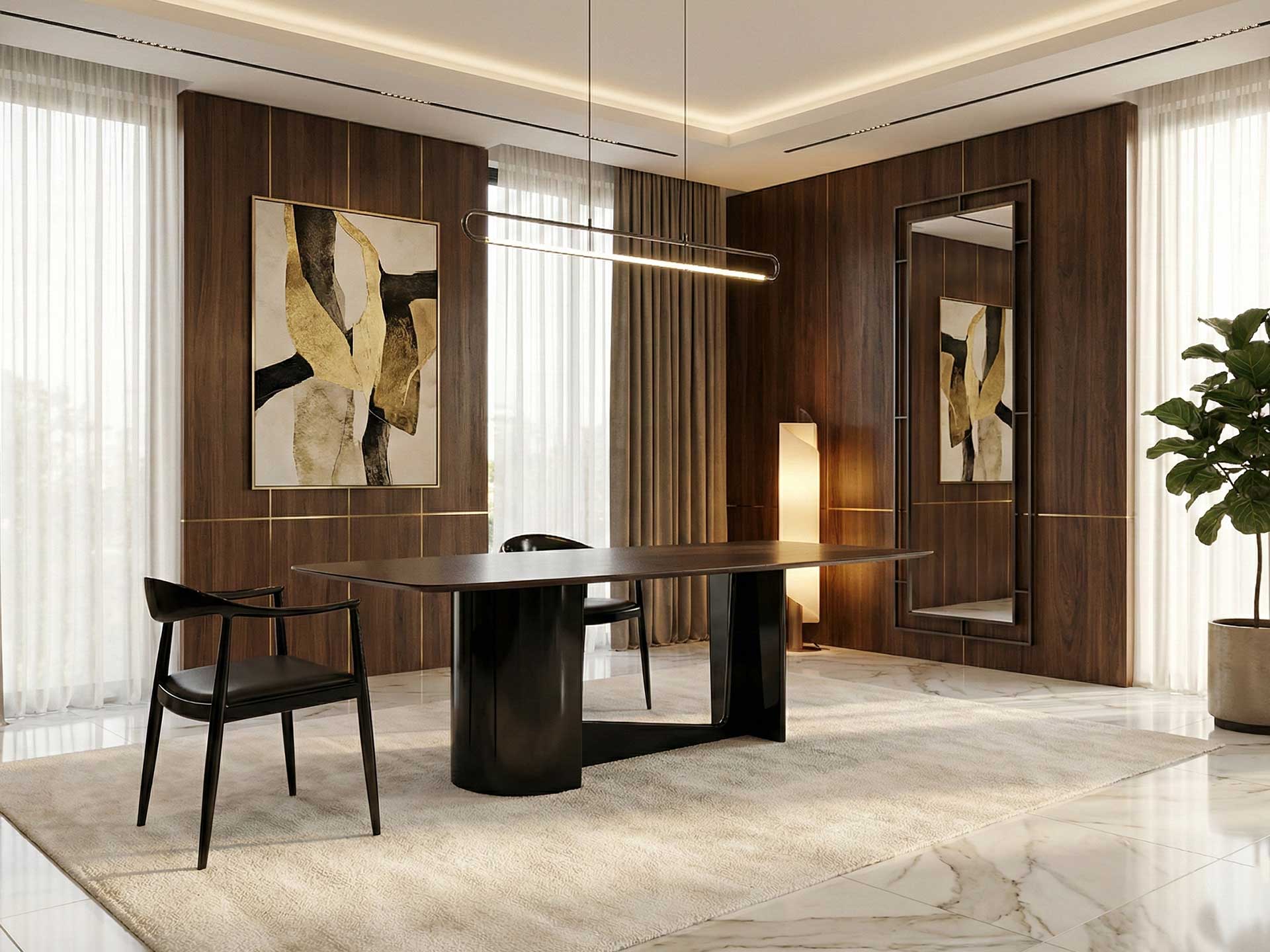 Dacă sunteți în căutarea atât a unui minimalism modern, cât și a unei prezențe prestigioase în casa dumneavoastră, Sufrageria Artemis a fost creată special pentru dumneavoastră. Cu texturi de suprafață modelate prin măiestrie rafinată și scaune ergonomice, acest set transformă cinele într-o ceremonie distinsă. Prin detaliile care reflectă perfect lumina și o postură ce sporește luminozitatea spațiului, Artemis este ca o gazdă nobilă care vă va însoți atunci când primiți cei mai de seamă oaspeți.