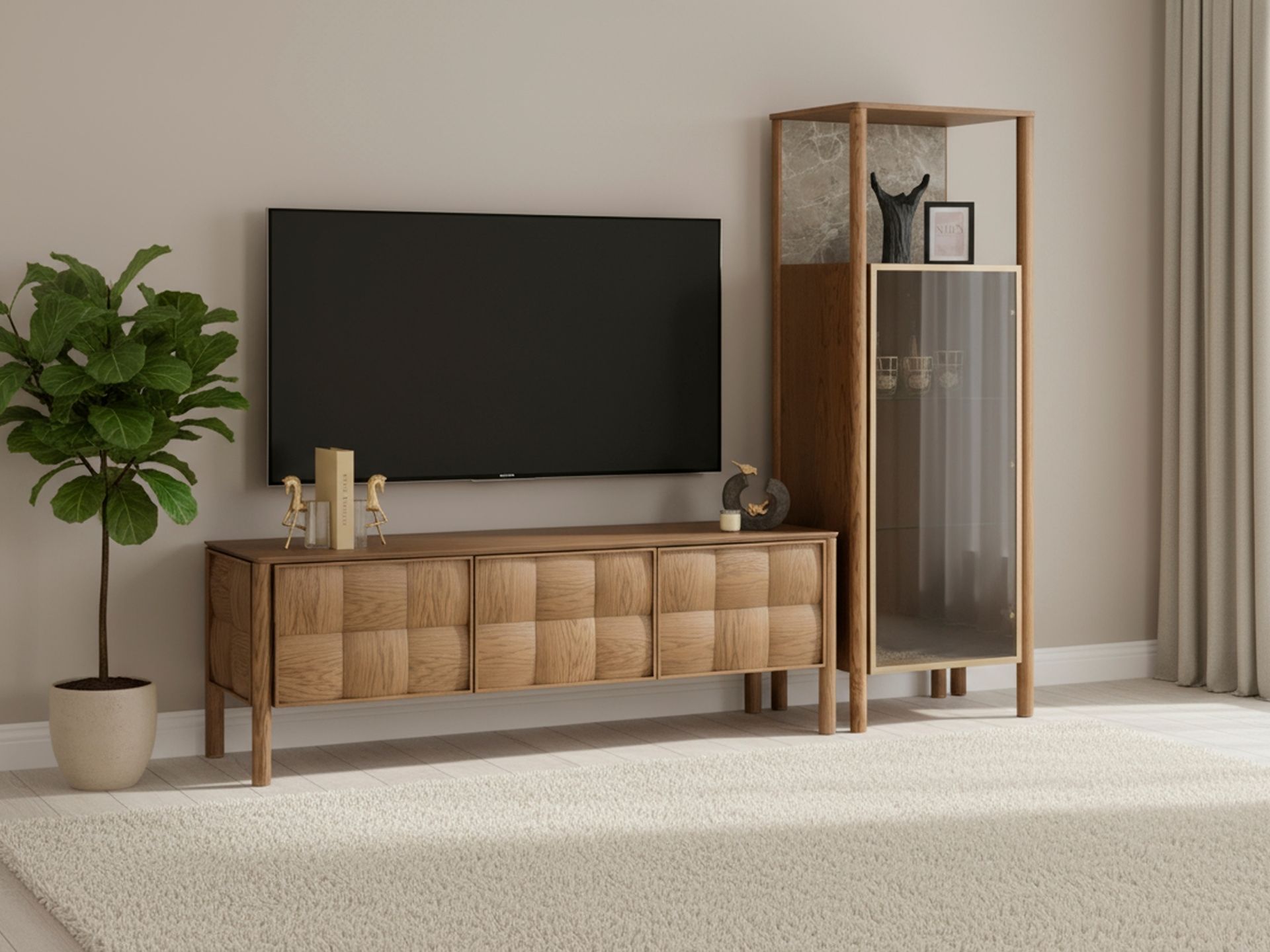 Unitatea TV Bianca, remarcabilă prin designul său elegant și liniile moderne, aduce stil și ordine în livingul dumneavoastră. Spațiile sale de depozitare generoase vă permit să aranjați în mod ordonat dispozitivele electronice și accesoriile, în timp ce materialele de calitate asigură o utilizare îndelungată. Cu detaliile sale minimaliste și forma estetică, Unitatea TV Bianca se potrivește diferitelor stiluri de decor, adăugând funcționalitate și un plus de rafinament spațiilor moderne de locuit.
