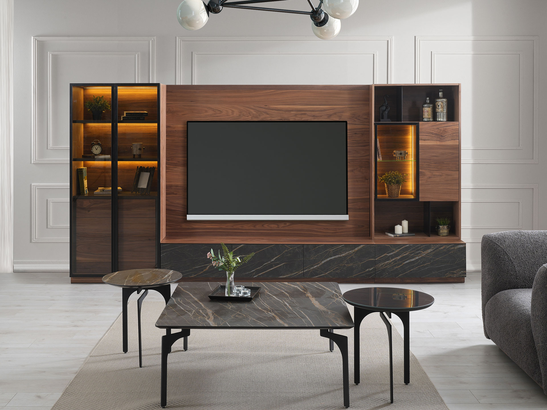 Unitatea TV Milano oferă un touch modern spațiului dumneavoastră de locuit cu estetica sa contemporană și designul practic. Cu detaliile sale elegante și stilate, Milano reflectă un stil atemporal cu linii minimaliste. Furnirul special utilizat în corpul unității adaugă o atmosferă sofisticată spațiului dumneavoastră, oferind o aparență ordonată.