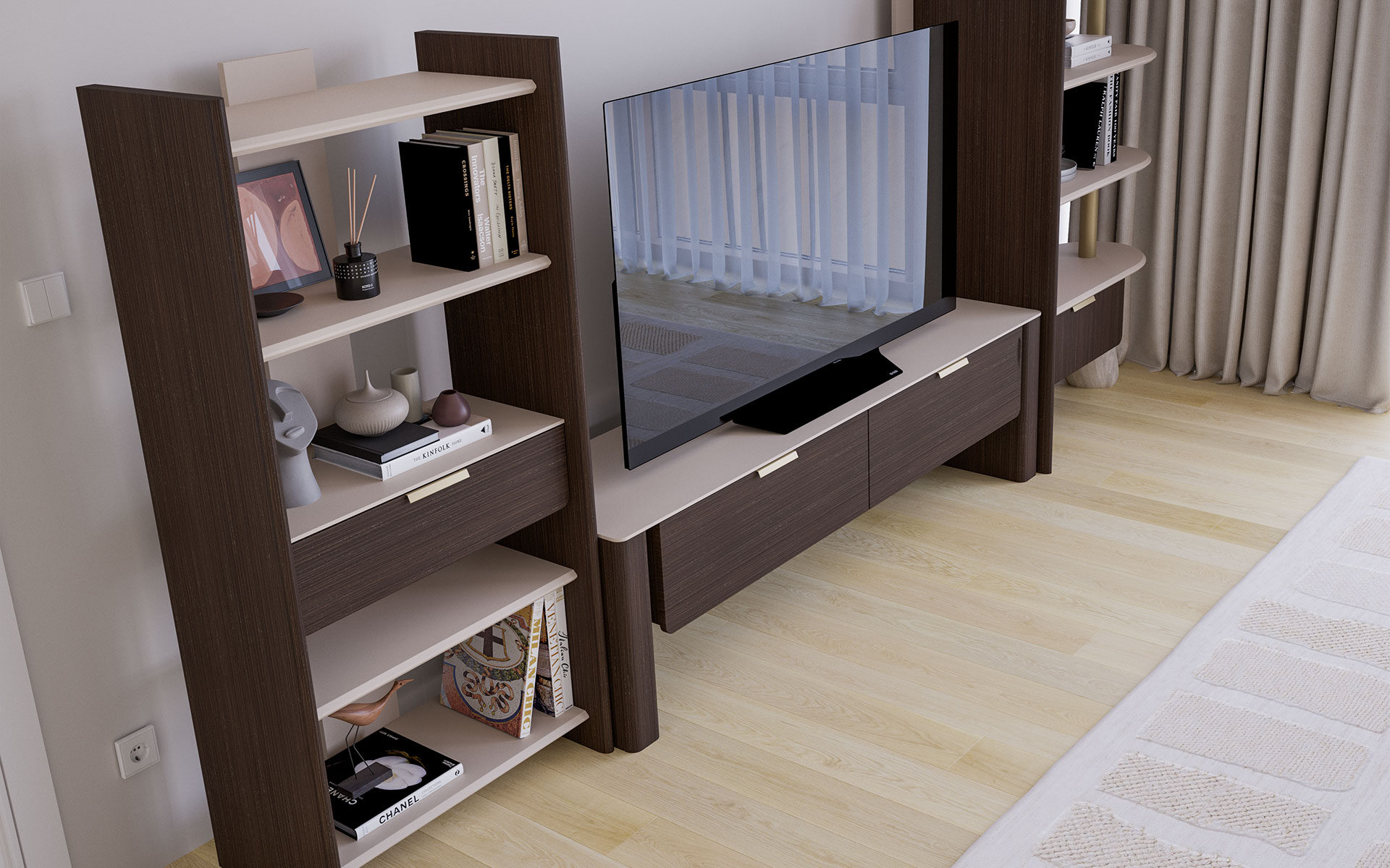 Corpul TV Terra adaugă o notă estetică spațiilor de locuit datorită designului său elegant și structurii funcționale. Liniile sale minimaliste, detaliile elegante și spațiul amplu oferă o soluție atât decorativă, cât și practică. Fabricate din materiale durabile, aceste corpuri TV moderne creează un spațiu bine organizat pentru televizor, dispozitive media și obiecte decorative, adăugând în același timp o atmosferă modernă și spațioasă casei tale. Disponibile într-o varietate de culori și dimensiuni, acestea completează orice stil de decor și creează un punct focal elegant în camerele de zi și livinguri.