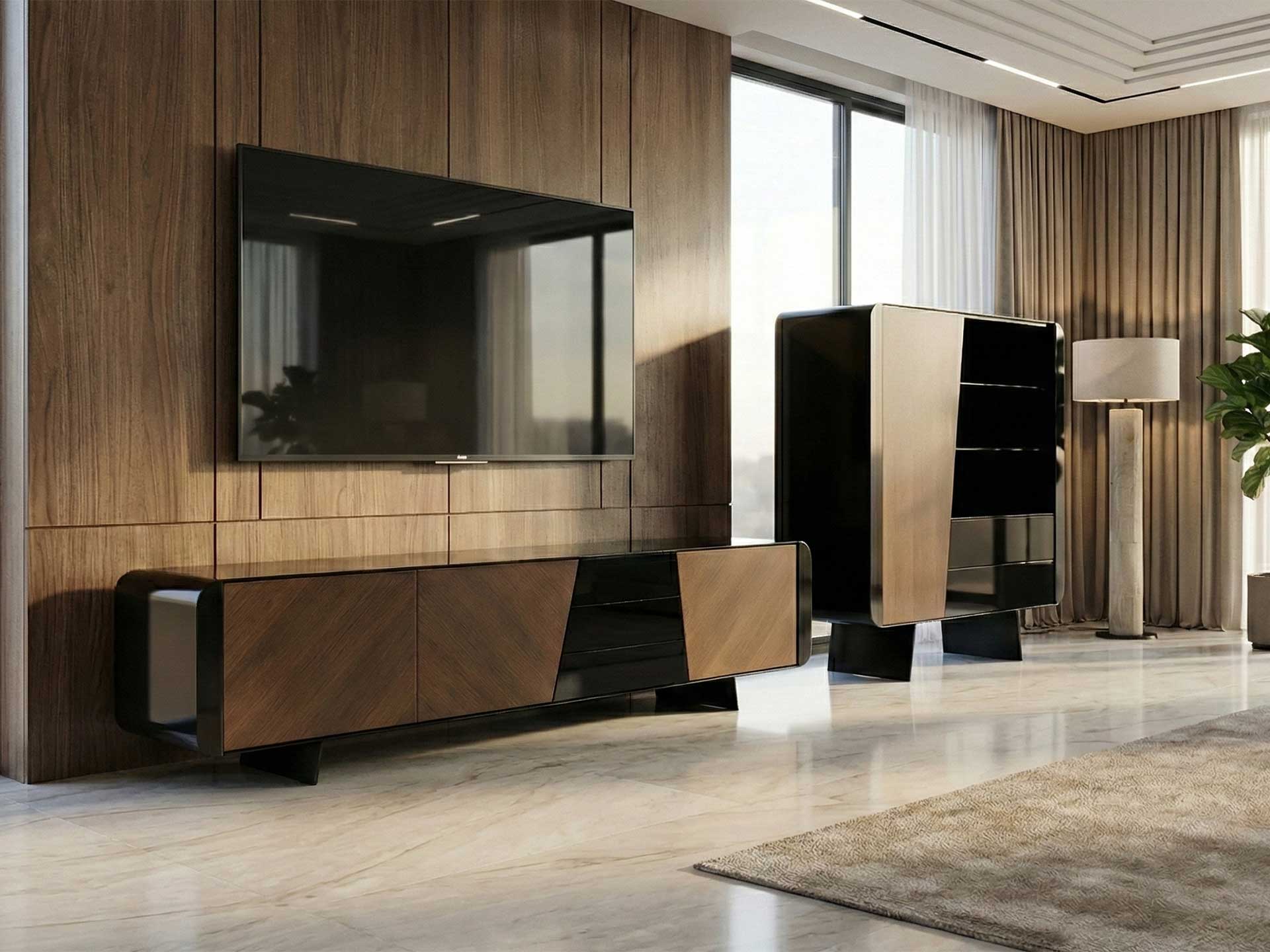 ТВ-тумба Artemis демонстрирует сильный и в то же время элегантный вид, созвучный благородству своего имени. Этот дизайн, где строгие линии сбалансированы мягкими переходами, превращает ваш ТВ-уголок из просто зоны просмотра в декоративный центр гостиной. Благодаря качественной текстуре поверхности, отражающей свет, и фирменному дизайну ножек, характерному для всей серии, Artemis придает вашему жилому пространству современный характер и изысканную атмосферу.
