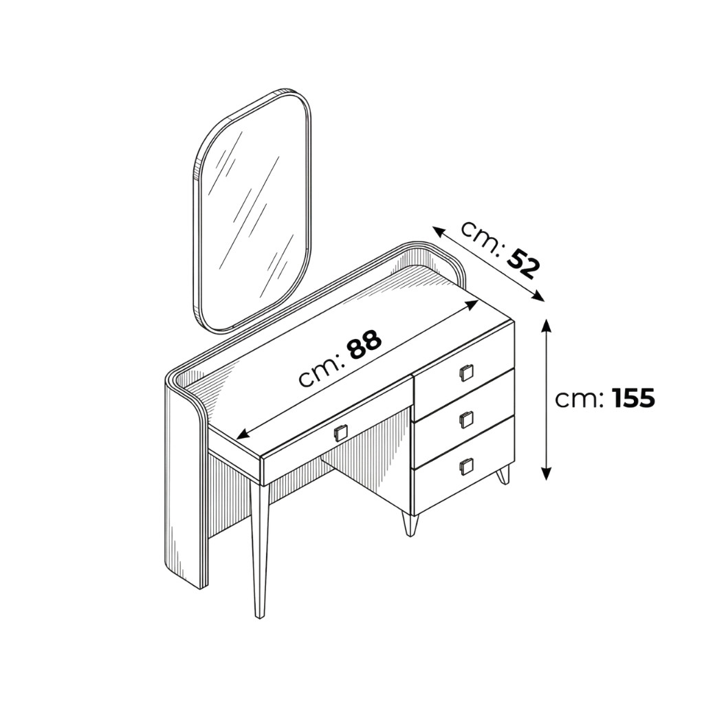 Kendinizi özel hissettirecek Kant Yatak Odası, siyah lake boyası ve pirinç eskitme detaylarıyla görkemli bir görünüm sunar. Fonksiyonelliği şıklıkla birleştiren Kant, dolapta kullandığı senkronize sürgülü aynalı cam kapakları ardında genişçe bir alan kullanımı sunar.